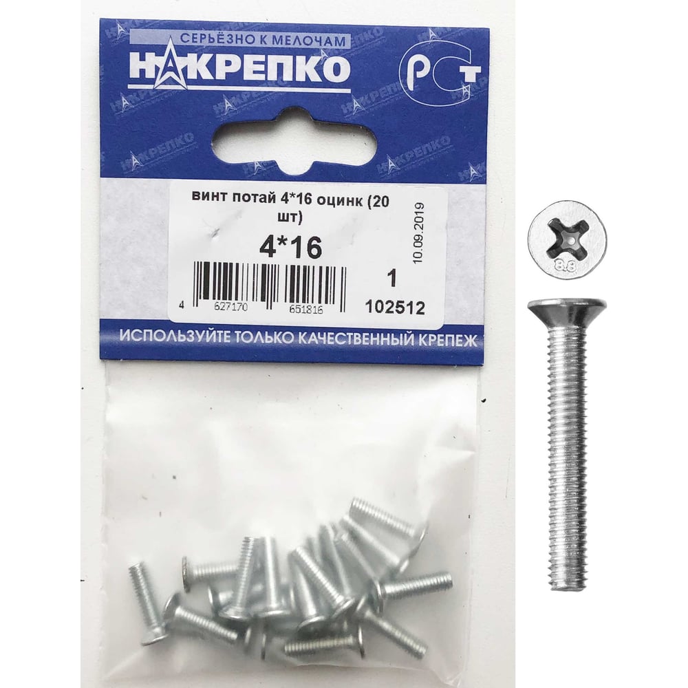 Потайной оцинкованный винт НАКРЕПКО 4х16 20 шт. 102512