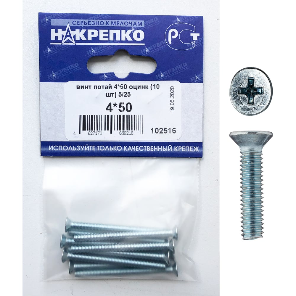 Потайной оцинкованный винт НАКРЕПКО 4х50 8 шт. 102516