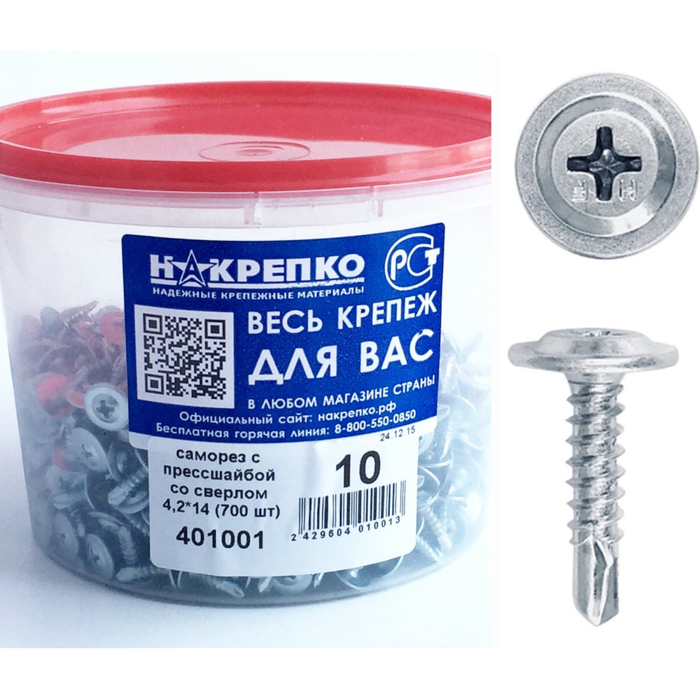 Саморез НАКРЕПКО с прессшайбой, со сверлом, 4,2х14, 700 шт. 401001