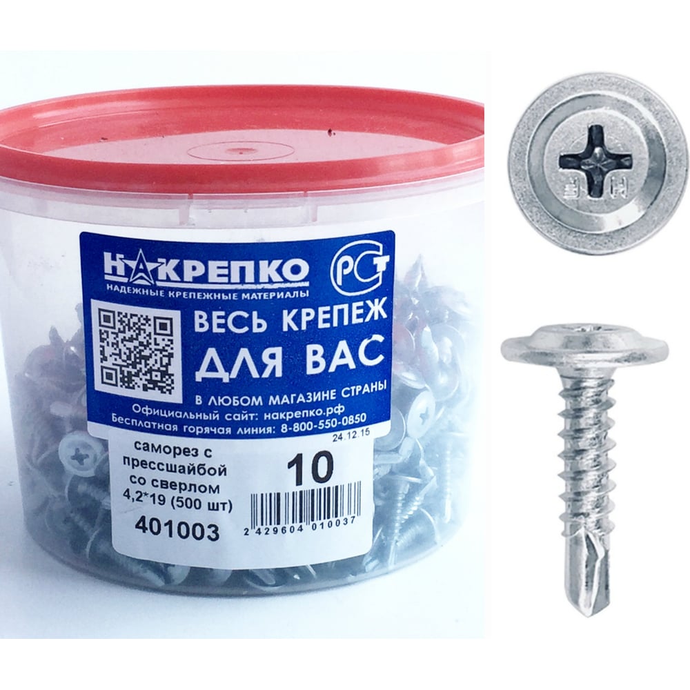 Саморез НАКРЕПКО с прессшайбой, со сверлом, 4,2х19, 500 шт. 401003
