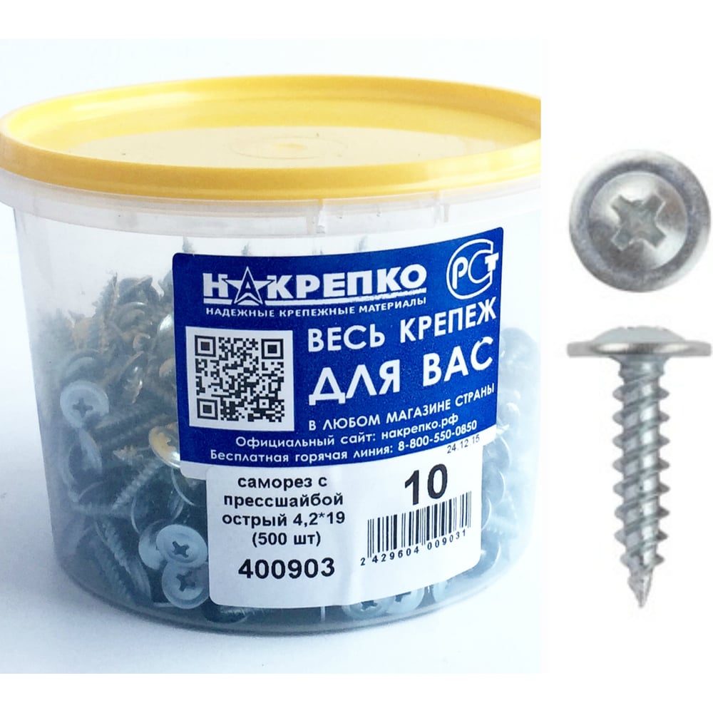 Саморез НАКРЕПКО с прессшайбой, острый, 4,2х19, 500 шт. 400903