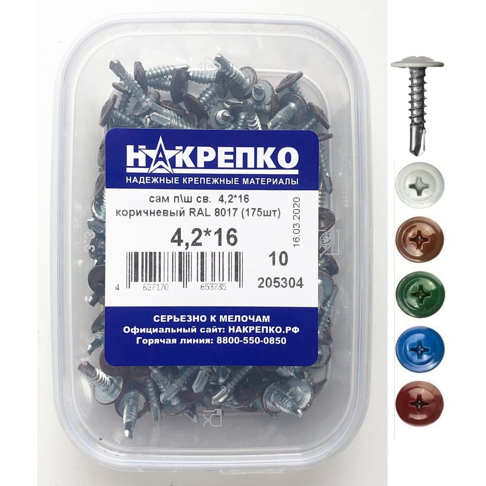 Саморез НАКРЕПКО п\ш, св., 4,2х16 коричневый, RAL 8017, 175 шт. 205304