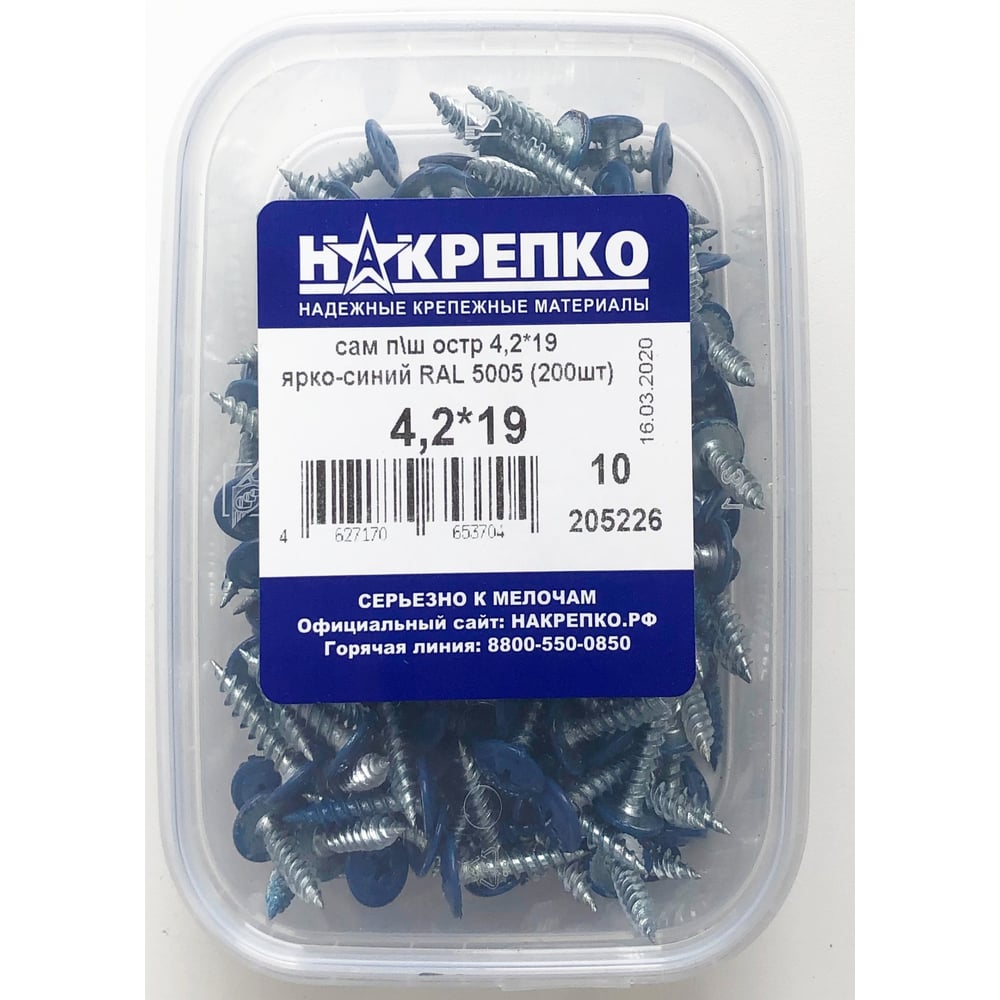 Саморез с прессшайбой НАКРЕПКО 4,2х19 ярко-синий RAL 5005 200 шт. 205226