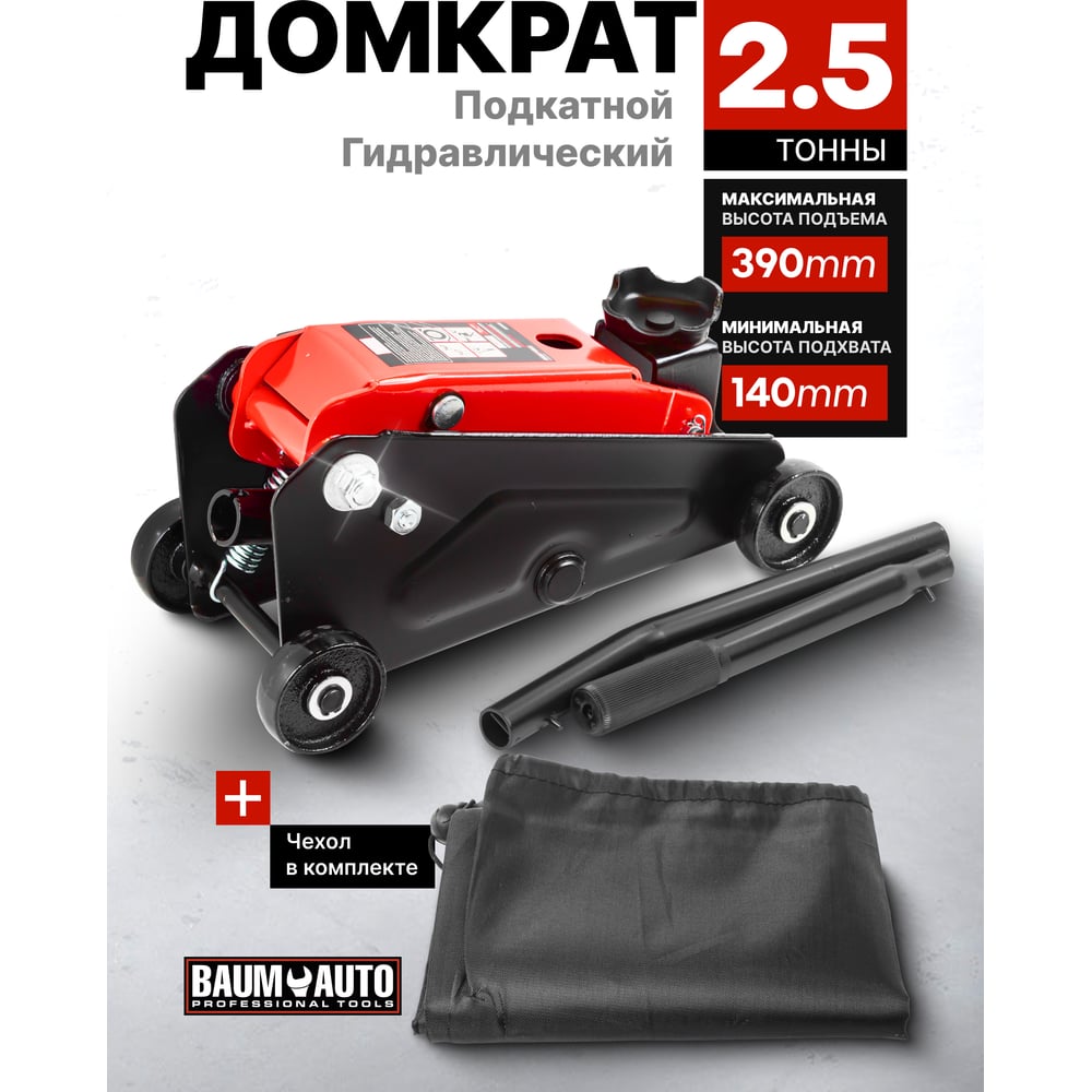 Подкатной гидравлический домкрат BaumAuto 2.5т, h min 140мм, h max 390мм BM-TR20005(52144)
