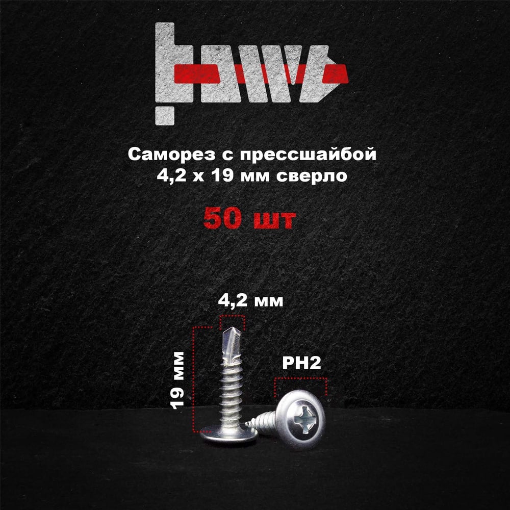 Саморез с прессшайбой BOWT сверло, 4,2x19, 50 шт. P02357