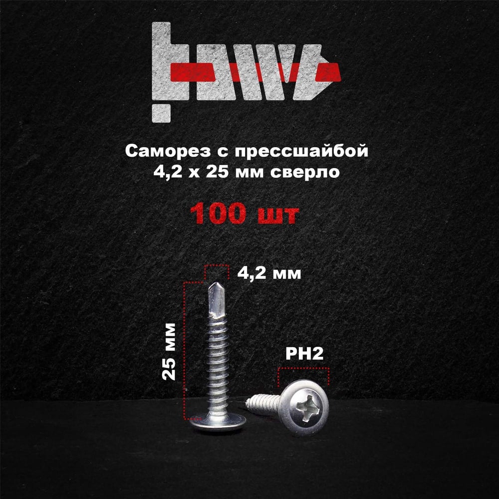 Саморез с прессшайбой BOWT сверло, 4,2x25, 100 шт. P02363