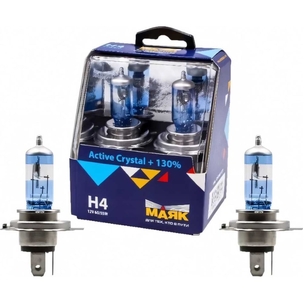 Автомобильная галогенная лампа МАЯК H4, 12 В, 60/55 Вт, P43t, Active Crystal +130%, 2 шт. 72420AC+130