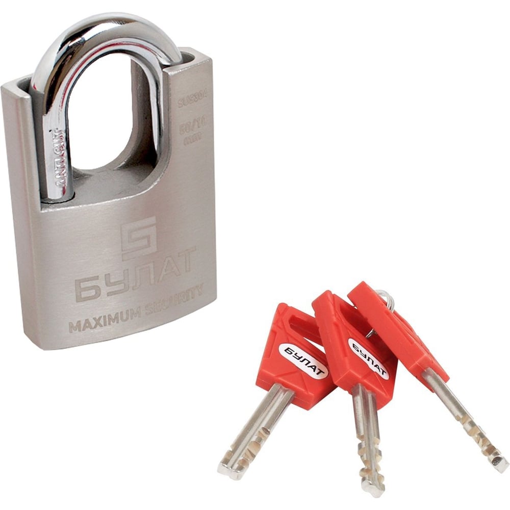 Навесной замок БУЛАТ ВС 3-У60 НС нержавеющая сталь, 3 кл., d=12 мм 15472