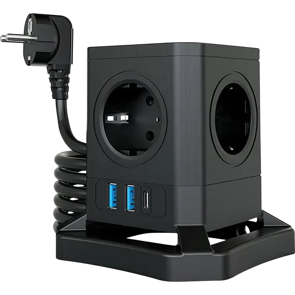 Габариты без упаковки 112х112х120 мм Цвет корпуса черный Выключатель на корпусе есть Световая индикация нет Заземление есть Напряжение сети 220 В Номинальная сила тока 10 А Морозостойкий нет Длина кабеля 2 м Сечение провода 3х1.0 мм² Защитные шторки есть Мощность (кВт) 2.5 Крепление на стену нет Max нагрузка (Вт) 2500 Количество USB портов 2 шт Количество розеток 5 шт Цвет провода черный Сила тока USB 3.1 А С предохранителем да Для подключения к ИБП нет Вилка за шкаф нет Порт USB Type-C да С выключателем на каждую розетку нет