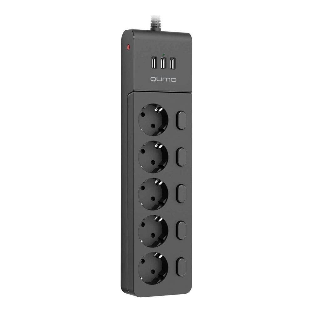Сетевой фильтр QUMO Power Bar PRO 6SP4U P-0006, 5 независимо отключаемых розеток, 2500 Вт, 10A, кабель 2м 3 мм чистая медь, пожаробезопасный пластик, евровилка, 3 USB порта 3,1A суммарно 42091