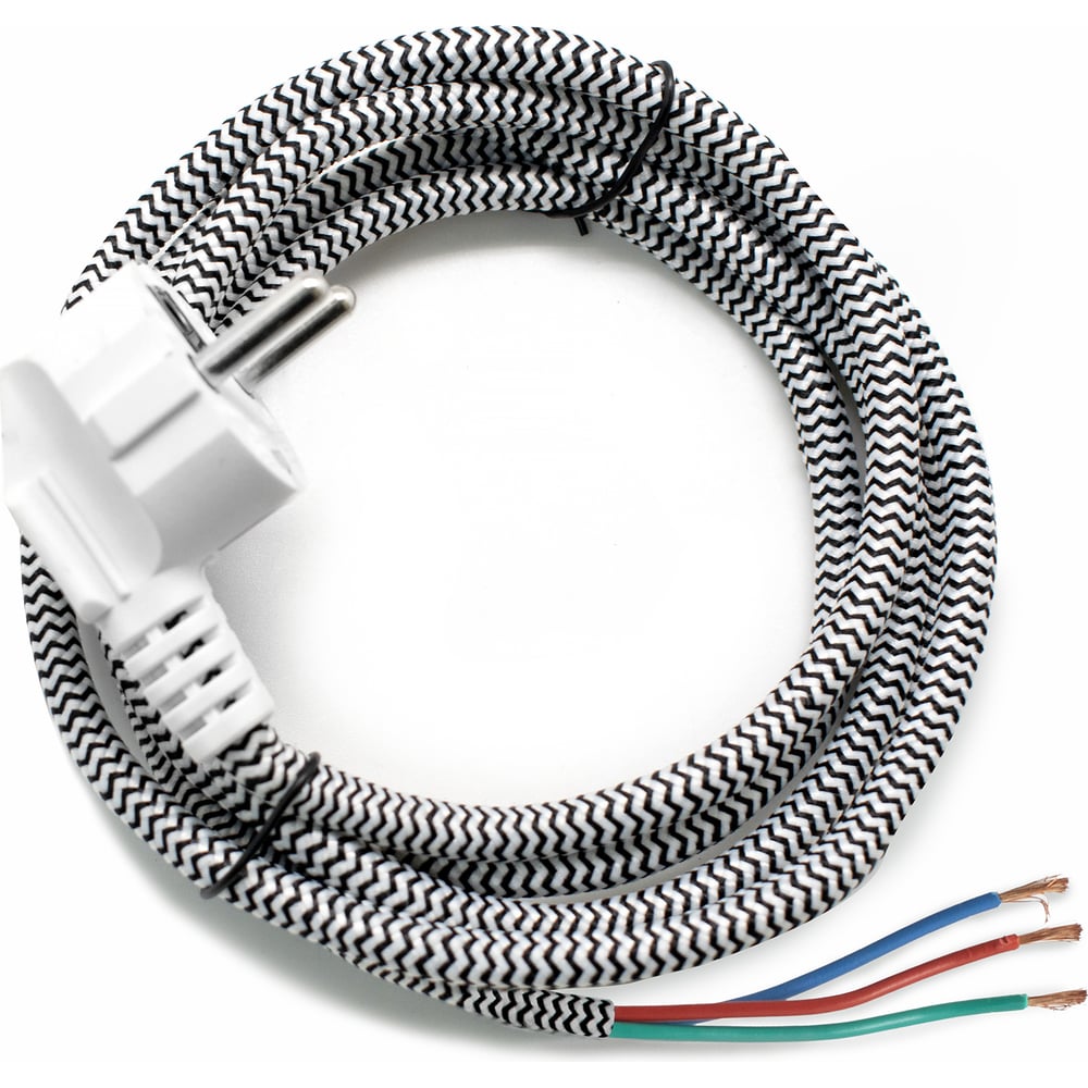Шнур сетевой OXION тканевый трехжильный с заземлением 2м с евровилкой, 16A 250V , 3500W, 3x1,5мм2, арт. OX-OPC028