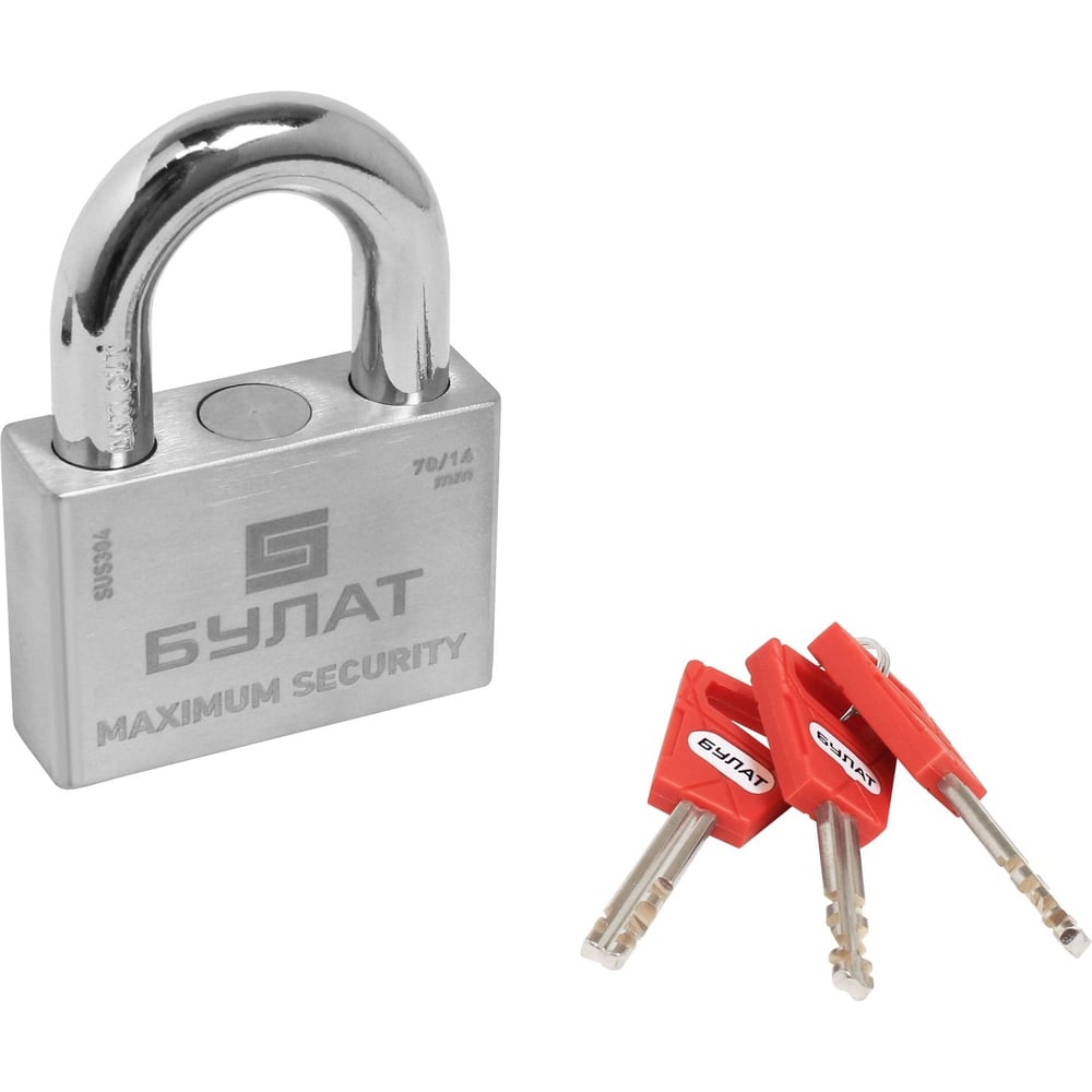 Замок навесной БУЛАТ ВС 3-С70 НС нержавеющая сталь, 3 ключа, d=14 мм 14431