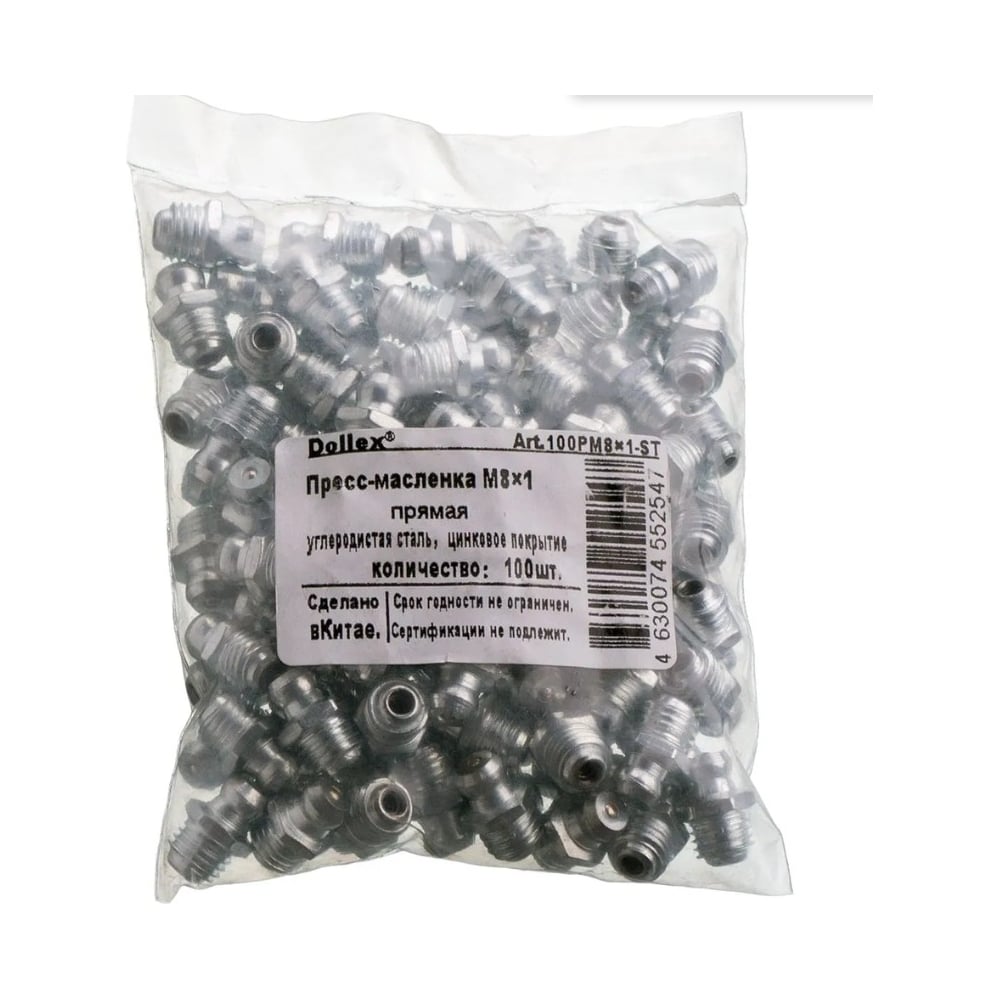 Пресс-масленка DolleX М8x1 прямая, упаковка 100 шт. 100PM8x1-ST