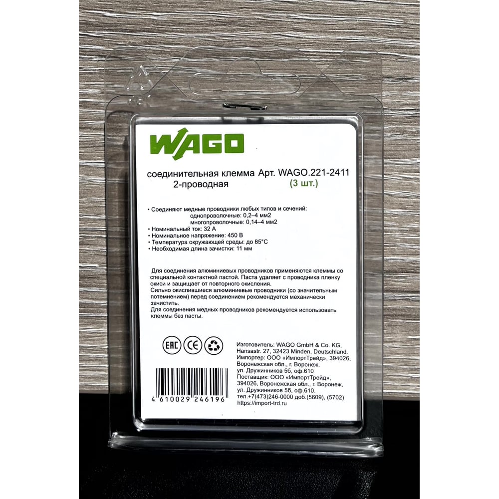 | Количество зажимаемых проводов | 2 шт |