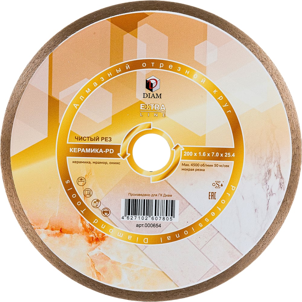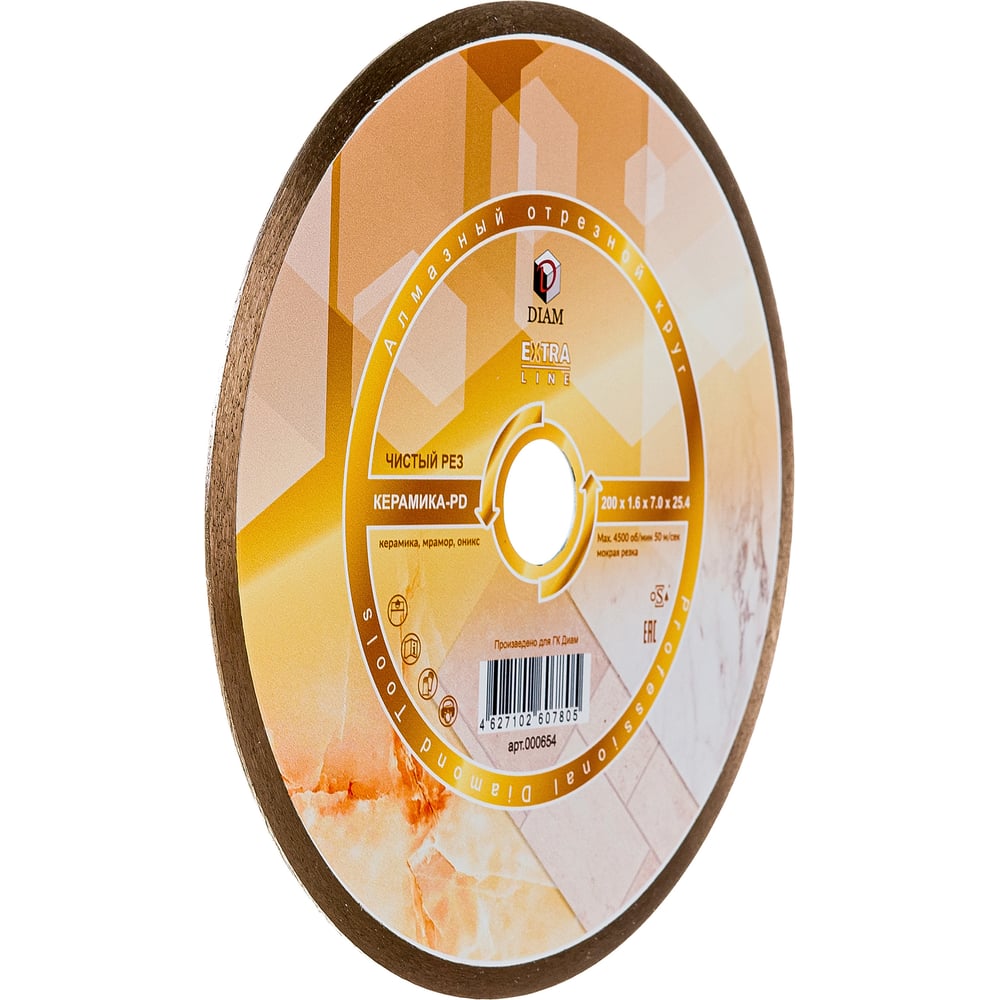 Диск алмазный отрезной сплошной Diam 200x1,6x7,0x25,4 Керамика, серия Экстра (Керамика, Мрамор, Оникс) 000654