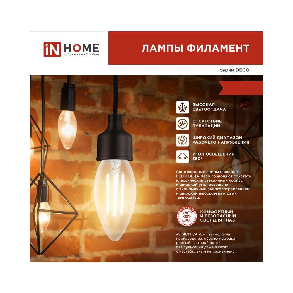 Лампа светодиодная IN HOME LED-СВЕЧА-deco 4690612055954