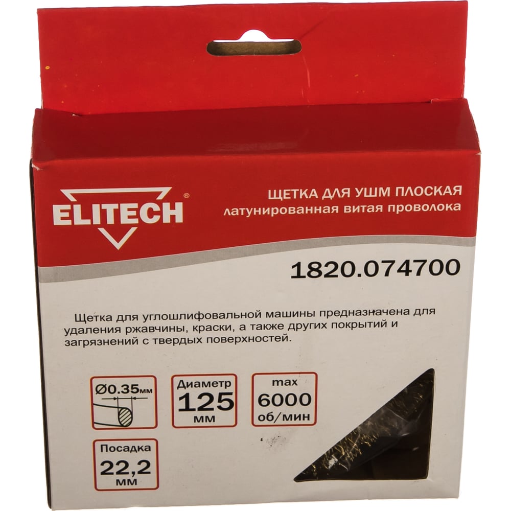 Щетка плоская (125х22.2 мм; латунированная волнистая 0.35 мм) для УШМ Elitech 1820.074700