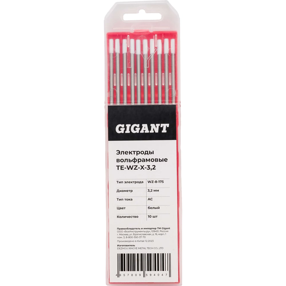 Электроды вольфрамовые (WZ-8-175; 3.2 мм; белый; АС;10 шт) Gigant TE-WZ-X-3,2