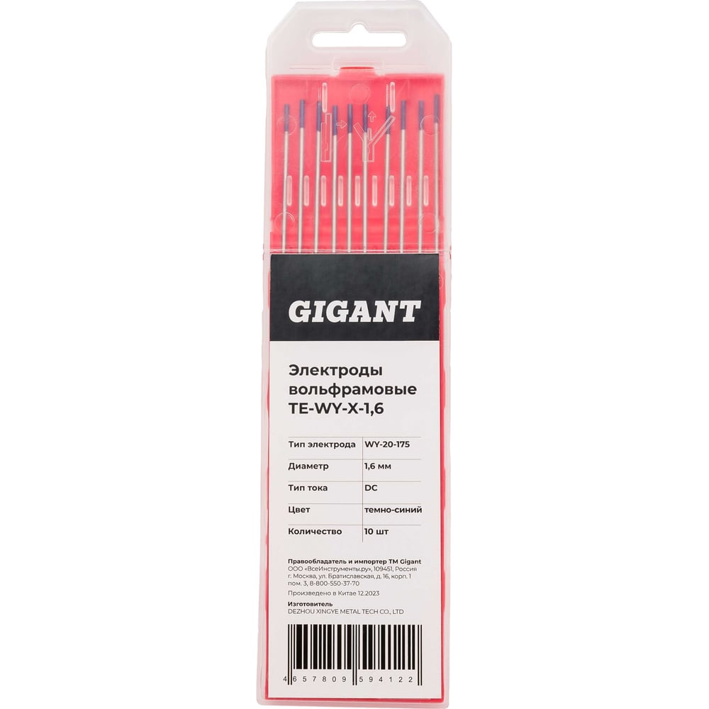Электроды вольфрамовые (WY-20-175; 1.6 мм; темно-синий; DC; 10 шт) Gigant ТЕ-WY-X-1,6