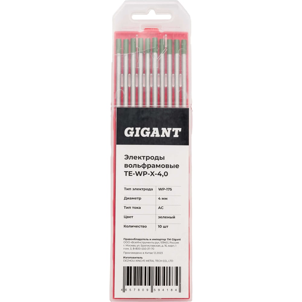 Электроды вольфрамовые (WP-175; 4 мм; зеленый; АС; 10 шт) Gigant TE-WP-X-4,0