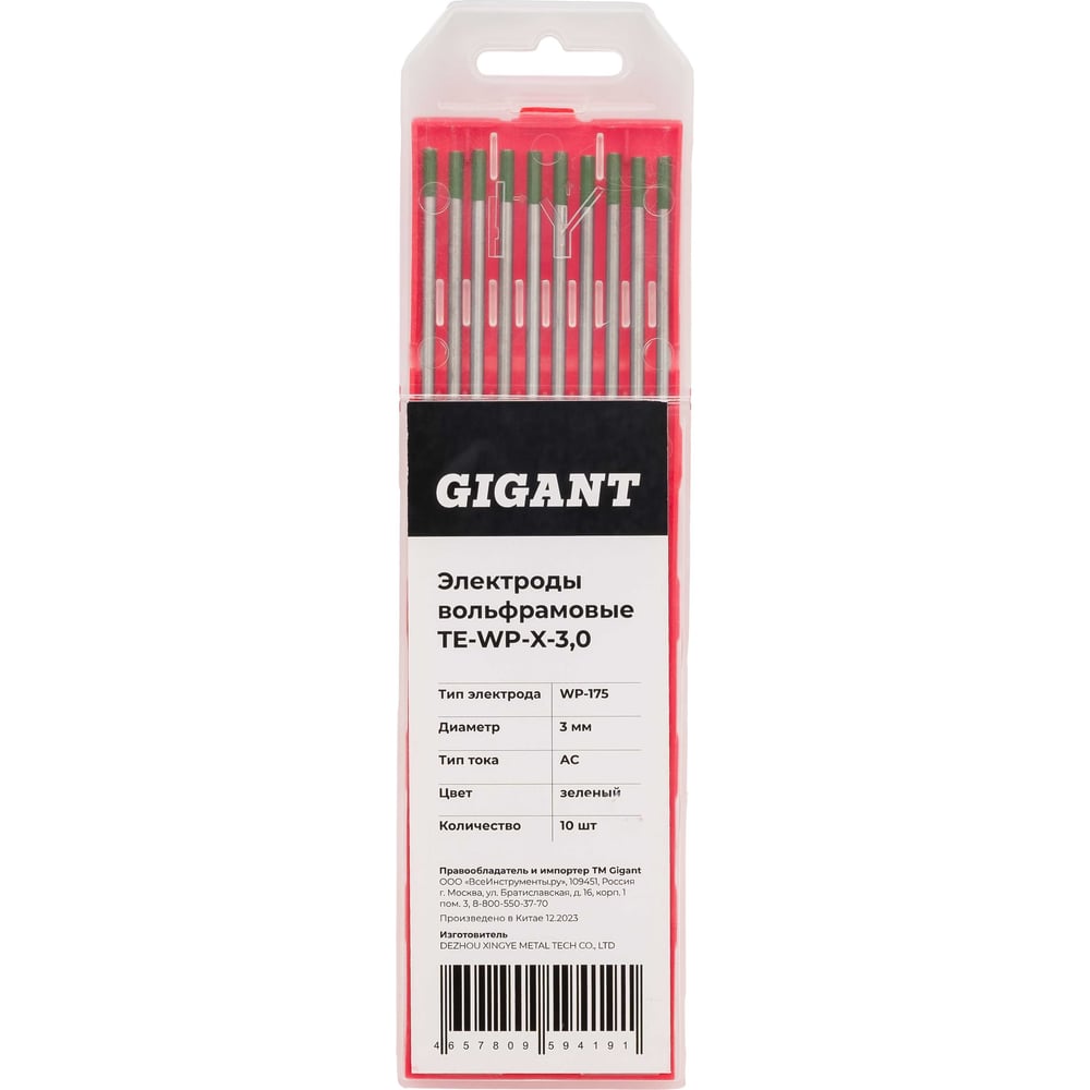Электроды вольфрамовые (WP-175; 3.0 мм; зеленый; АС; 10 шт) Gigant TE-WP-X-3,0