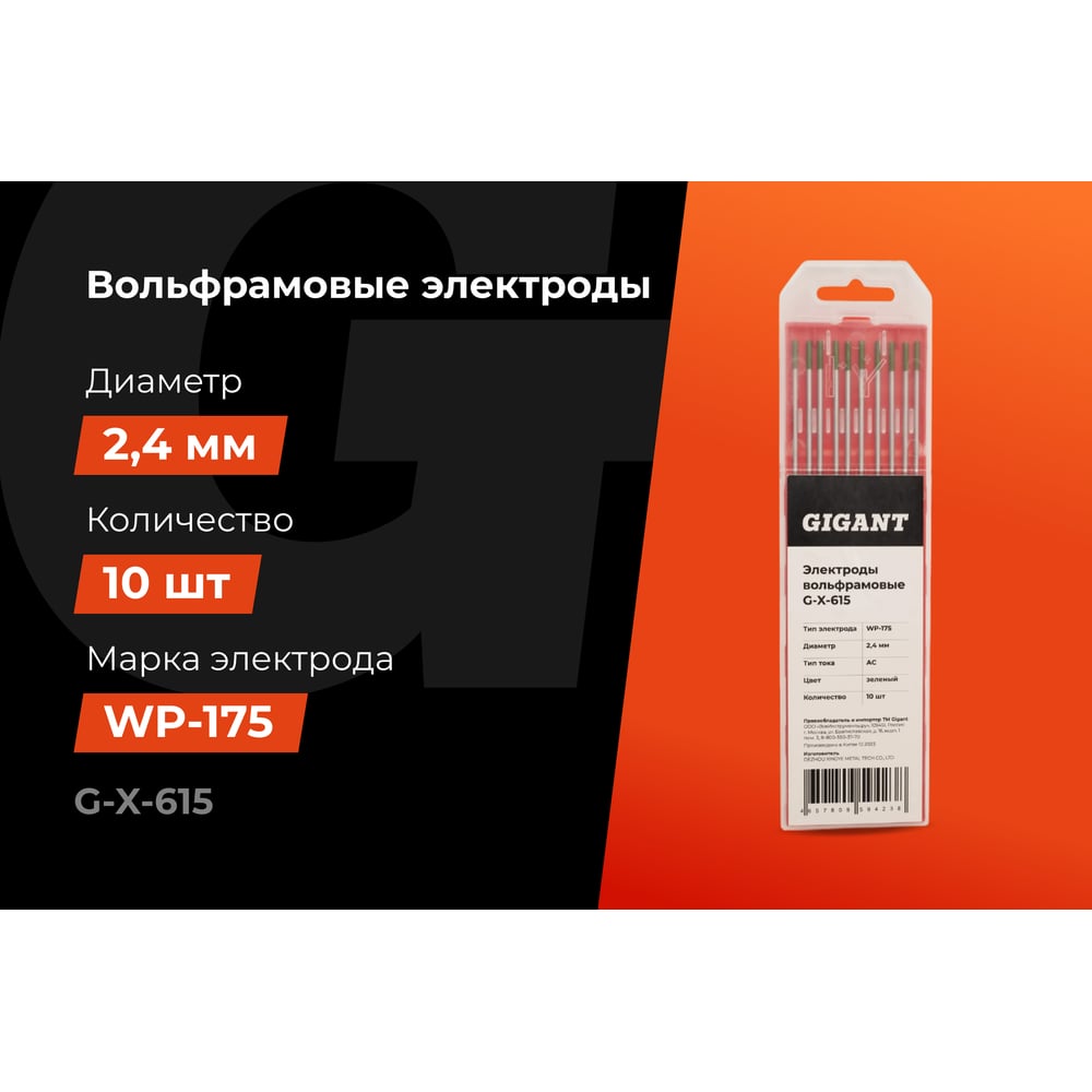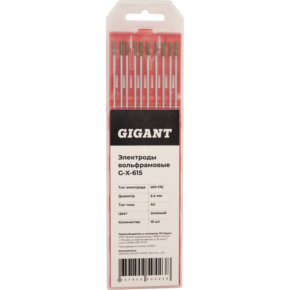 Электроды вольфрамовые (WP-175; 2.4 мм; зеленый; АС; 10 шт) Gigant G-X-615