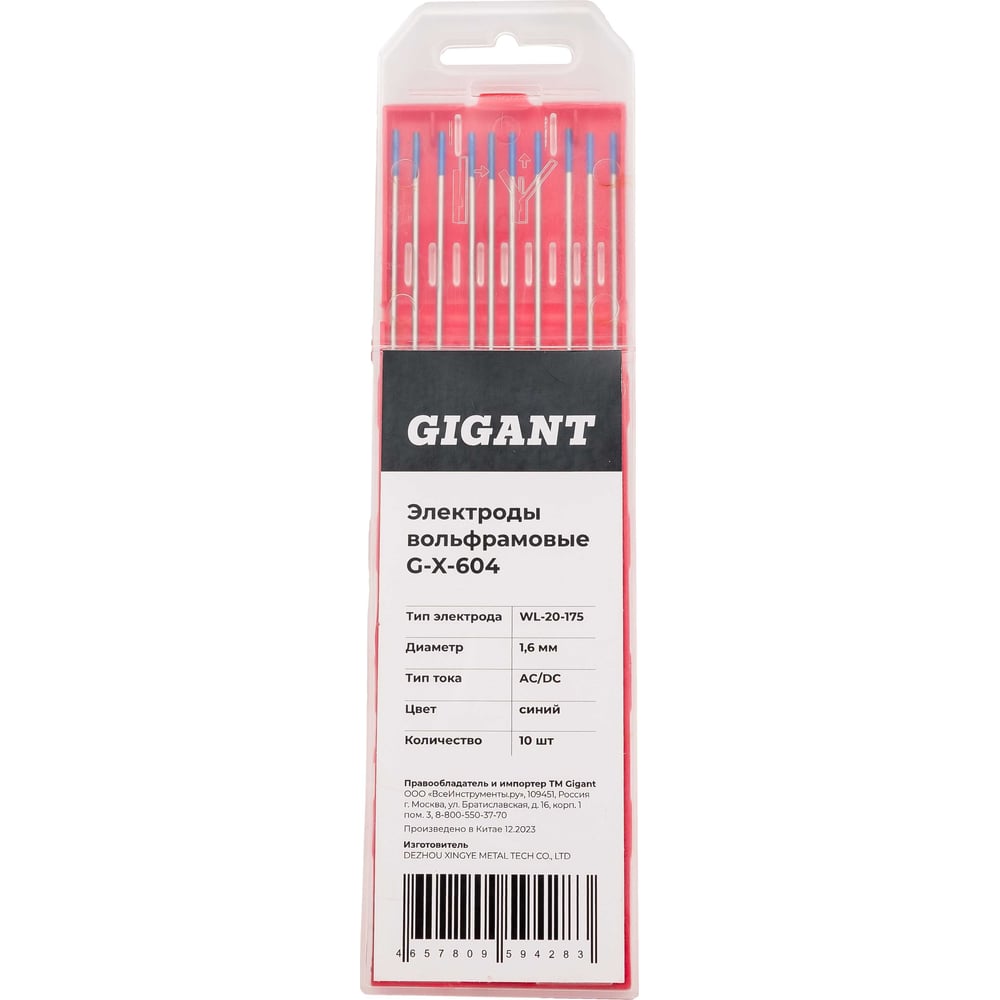 Электроды вольфрамовые (WL-20-175; 1.6 мм; синий; AC/DC; 10 шт) Gigant G-X-604