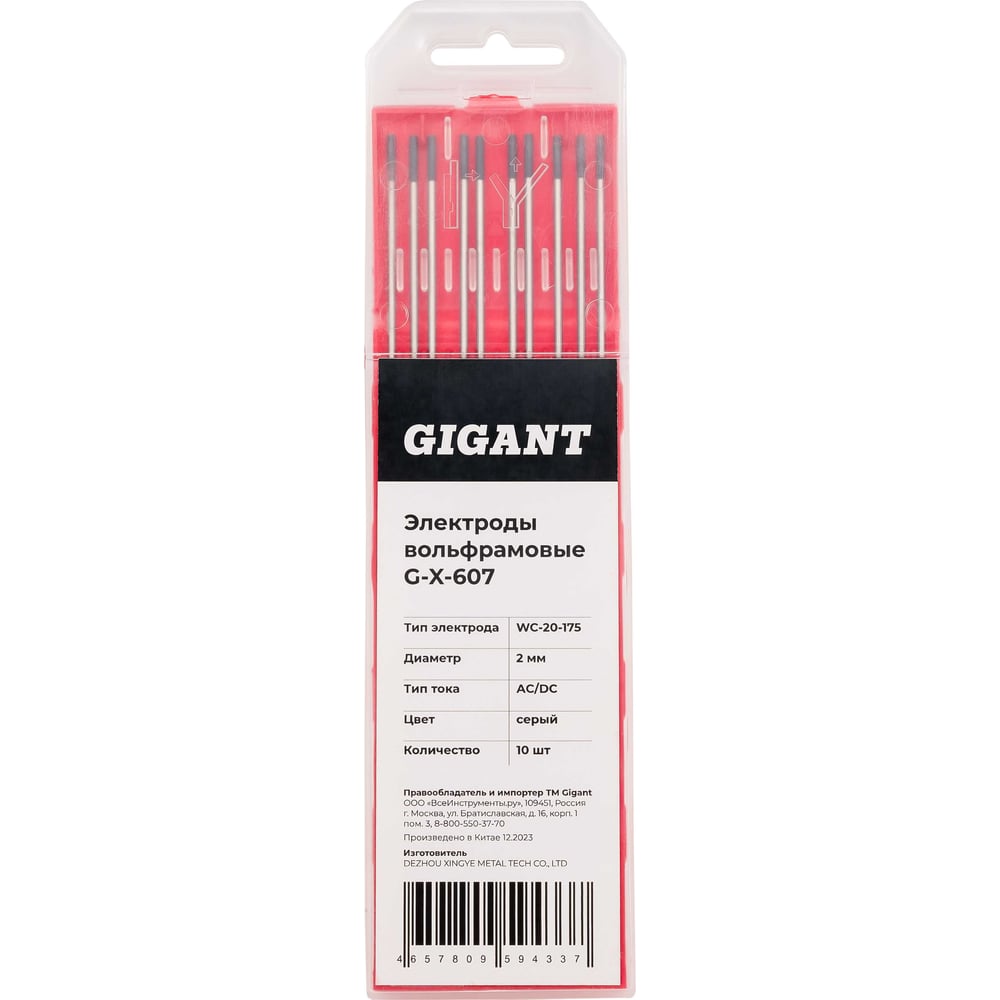 Электроды вольфрамовые (WC-20-175; 2 мм; серый; AC/DC; 10 шт) Gigant G-X-607