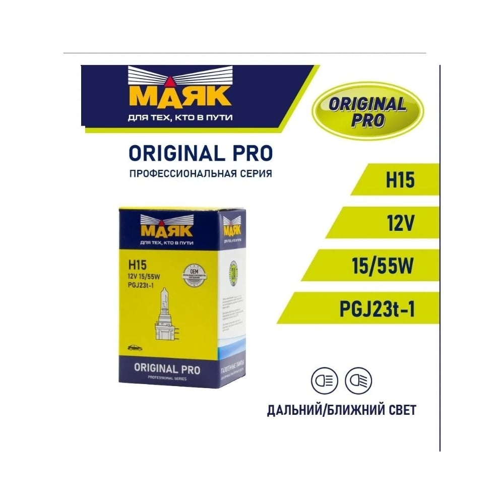 Автомобильная галогенная лампа МАЯК H15, 12 В, 15/55 Вт, PGJ23T-1, Original Pro 02115