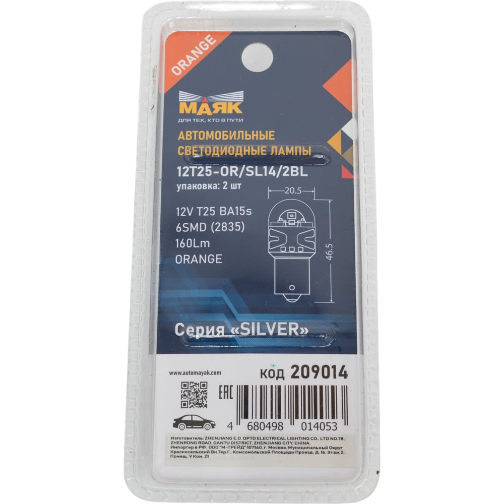 Автомобильная светодиодная лампа Маяк 12T25-OR/SL14/2BL