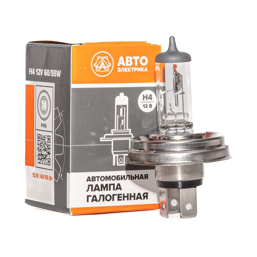 Автолампа АВТОЭЛЕКТРИКА H4, 12-60/55, P45t, галогенная, 12 В 09.02400