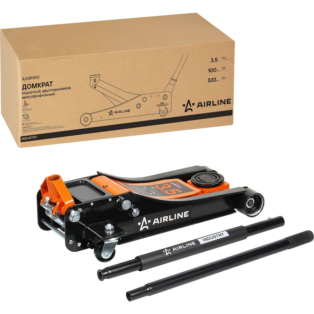 Домкрат подкатной AIRLINE 3.5т INDUSTRY двухпоршневой низкопрофильный (MIN - 100 мм, MAX - 533 мм) AJ35FI510