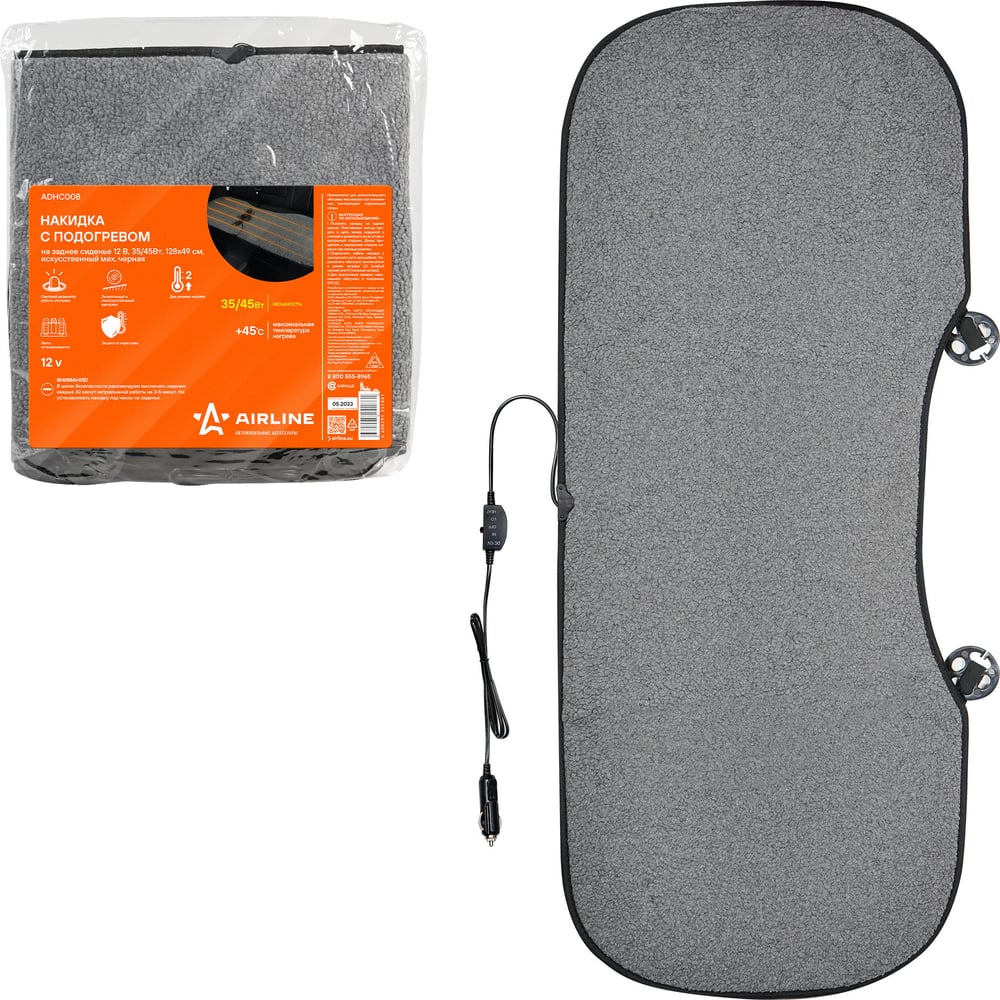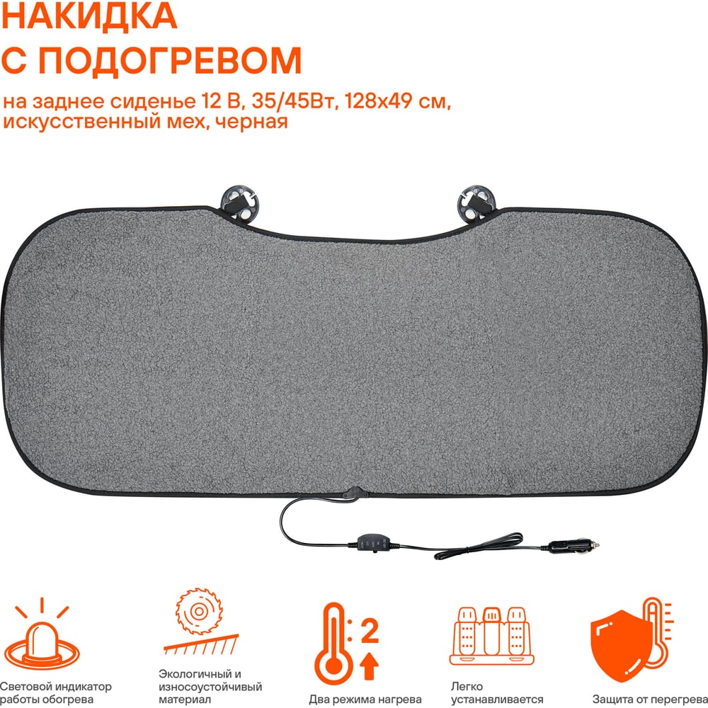 Накидка с подогревом на заднее сиденье Airline 12 В, 35/45Вт, 128х49 см, искусственный мех, черная ADHC008