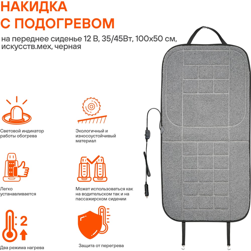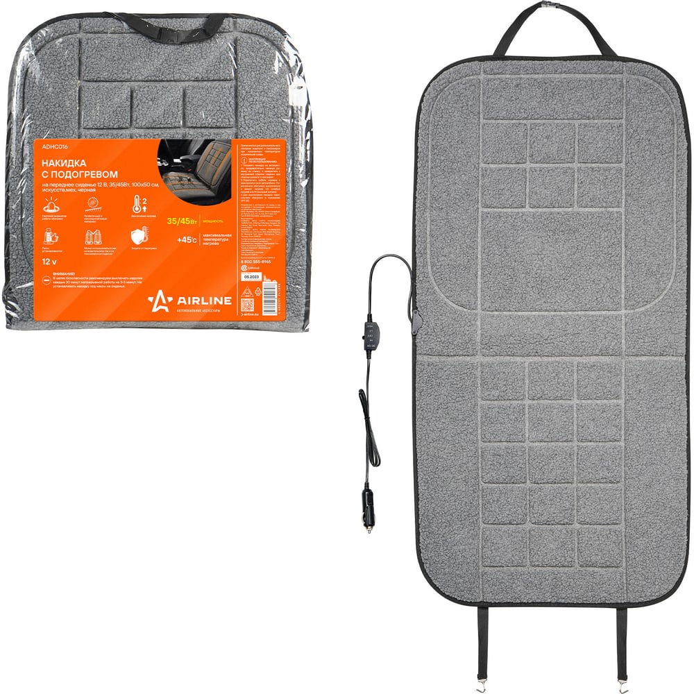Накидка с подогревом на переднее сиденье 12 В, 35/45Вт, 100х50 см, искусств.мех, черная Airline ADHC016