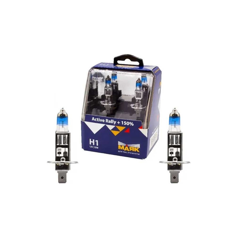 Автомобильная галогенная лампа МАЯК H1, 12V, 55W, P14.5s Active Rally +150%, 2 шт. 72120AR+150