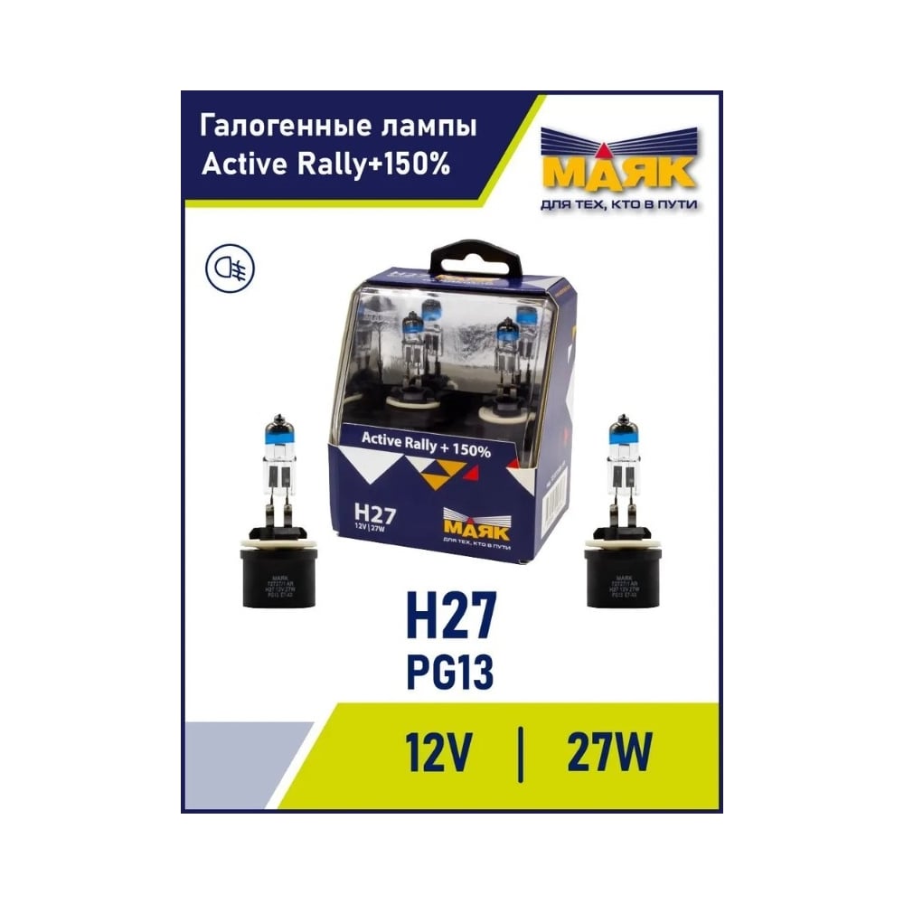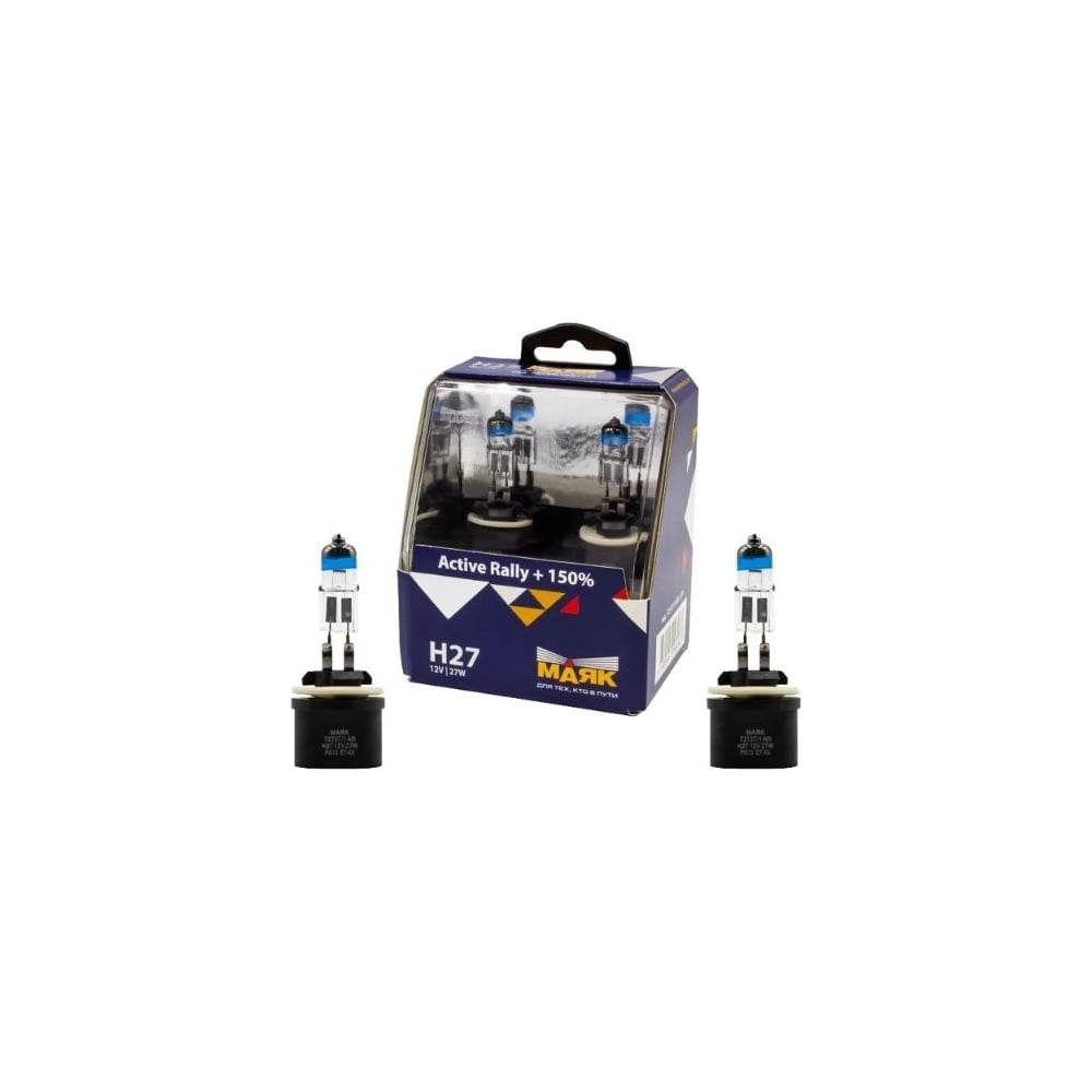 Автомобильная галогенная лампа МАЯК H27, 12 В, 27 Вт, PG13, Active Rally +150% (silver), 2 шт. 72727/1AR+150