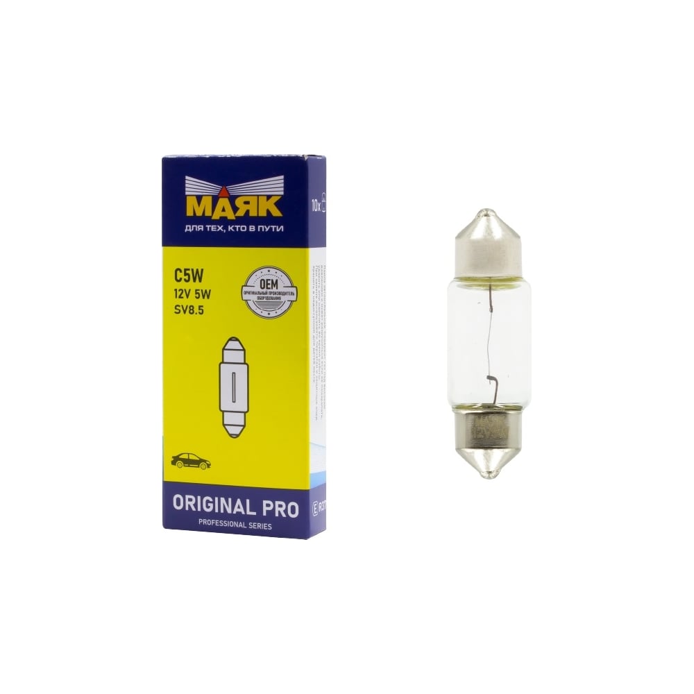 Автомобильная лампа накаливания МАЯК C5W, 12 В, 5 Вт, SV8.5/8 (36 мм), Original Pro, уп-ка 10 шт. 01205С(36)/10