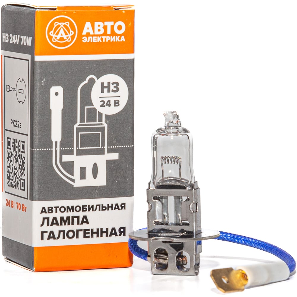 Автолампа АВТОЭЛЕКТРИКА h3 24-70 pk22s, галогенная 24 в, с проводком 09.02396