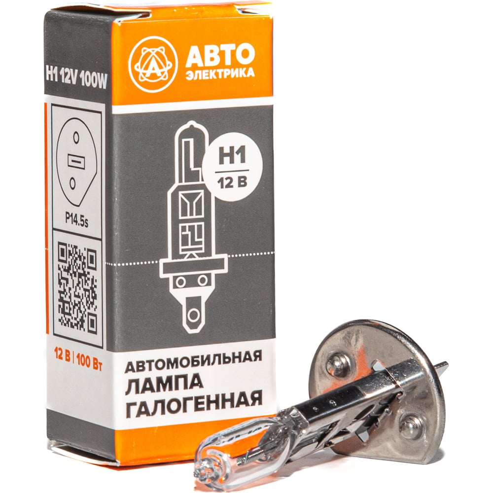 Автолампа АВТОЭЛЕКТРИКА h1 12-100 p14.5s, галогенная 12 в 09.02388