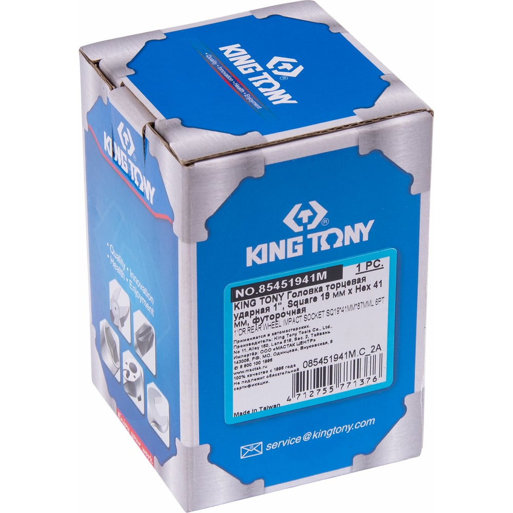 Головка торцевая ударная футорочная 1", Square 19 мм х Hex 41 мм KING TONY 85451941M