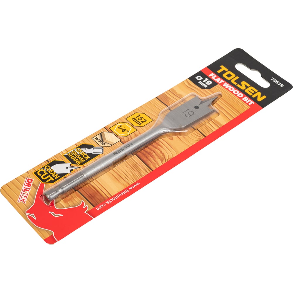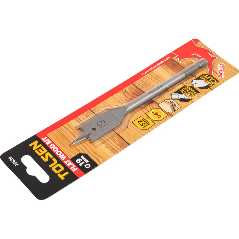 Сверло по дереву перьевое 19х152 мм, 1/4'' TOLSEN 75639