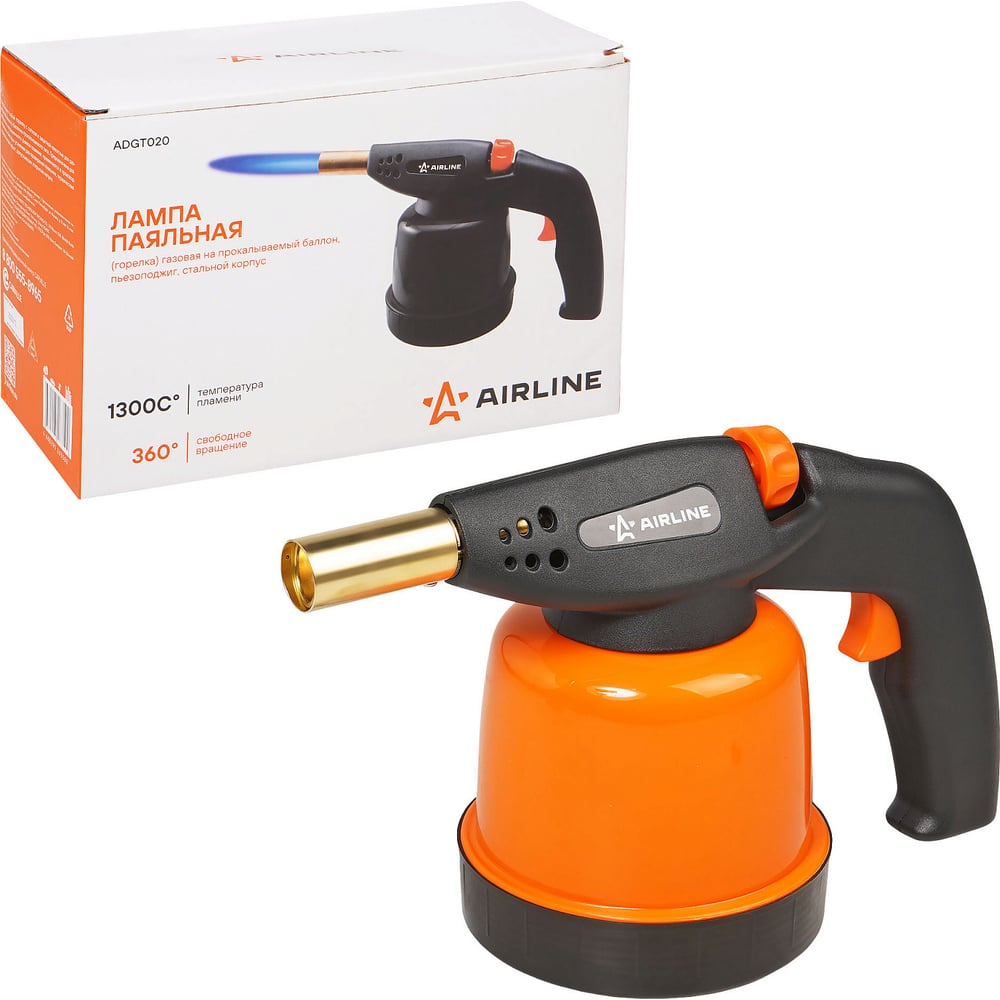Лампа паяльная Airline (горелка) газовая на прокалываемый баллон, пьезоподжиг, ADGT020