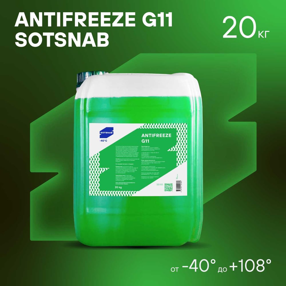 Антифриз для двигателя автомобиля SotSnab G11 (зеленый) АНТG11з-30.20