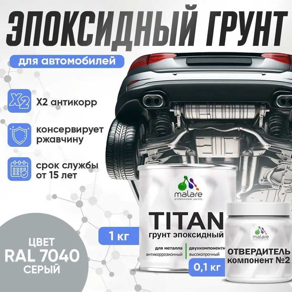 Эпоксидный грунт для авто MALARE грунтовка двухкомпонентная антикоррозионная высокопрочная, цвет серый RAL 7040 (1 кг + 0,1 кг отвердитель) ЭГАВТ7040Г0100