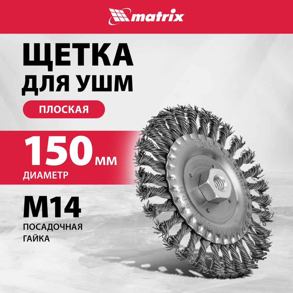 Щетка плоская для УШМ (150 мм; М14; плоская, крученая проволока 0.8 мм) MATRIX 74645