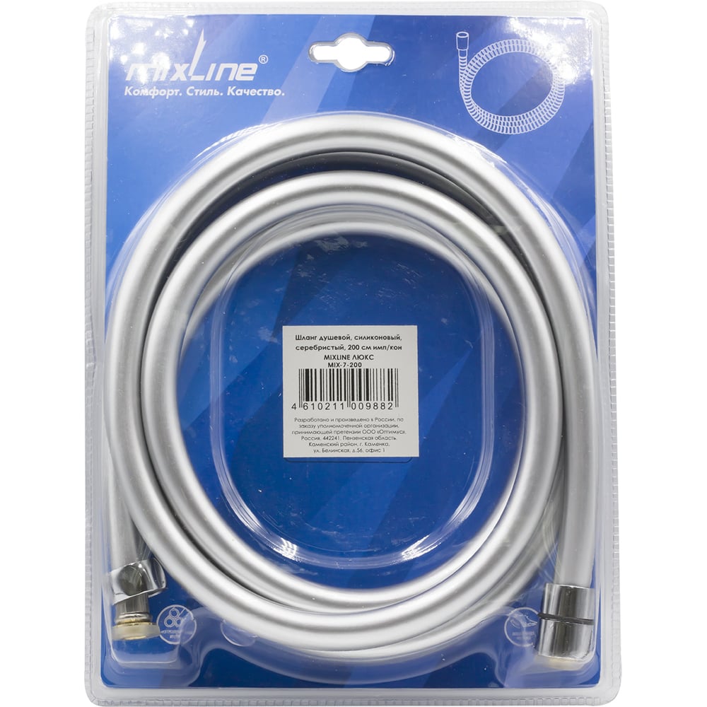 Шланг душевой MIXLINE 200 см имп/кон, силиконовый, серебристый MIX-7-200 ЛЮКС (блистер) 553192