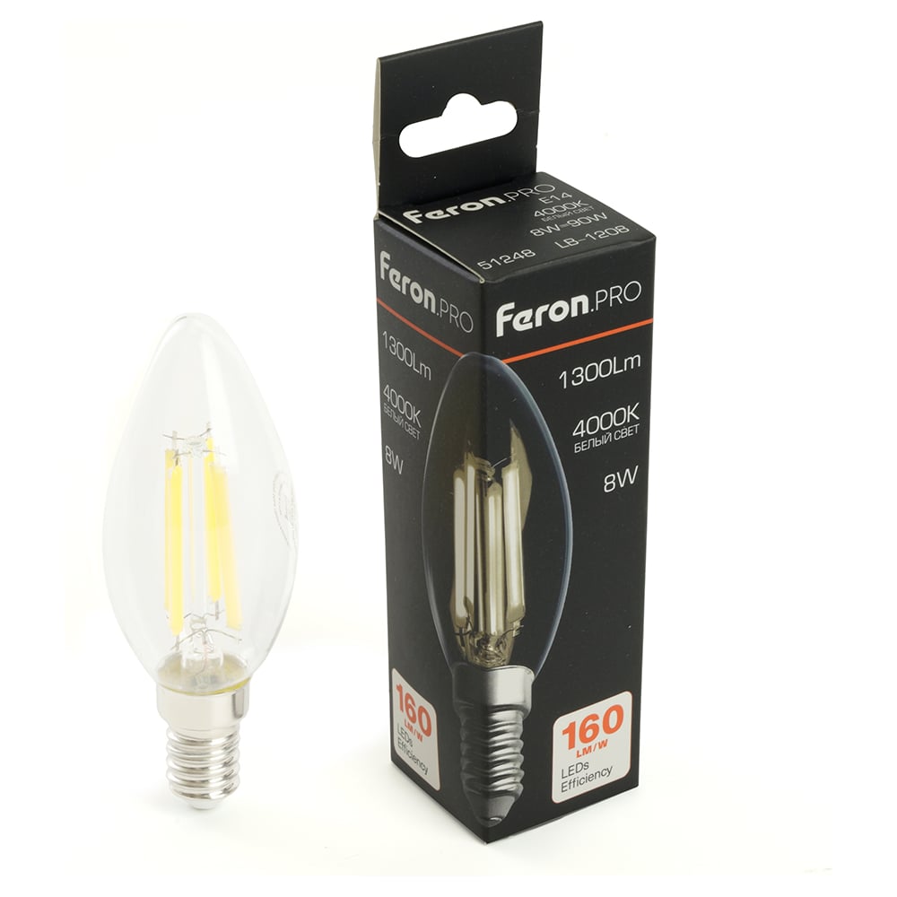 Лампа светодиодная FERON .PRO LB-1208 Свеча E14 8W 175-265V 4000K, 51248