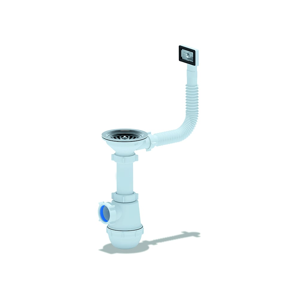 Сифон для мойки АНИ Пласт бутылочный, гибкий перелив, 3 1/2x40, нержавеющая сетка A0145S 025-0399
