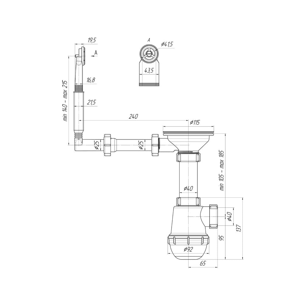 Бутылочный сифон для мойки АНИ Пласт A0142 025-0397