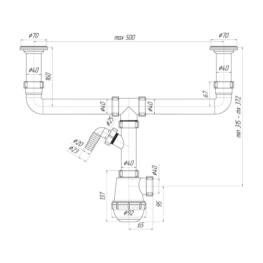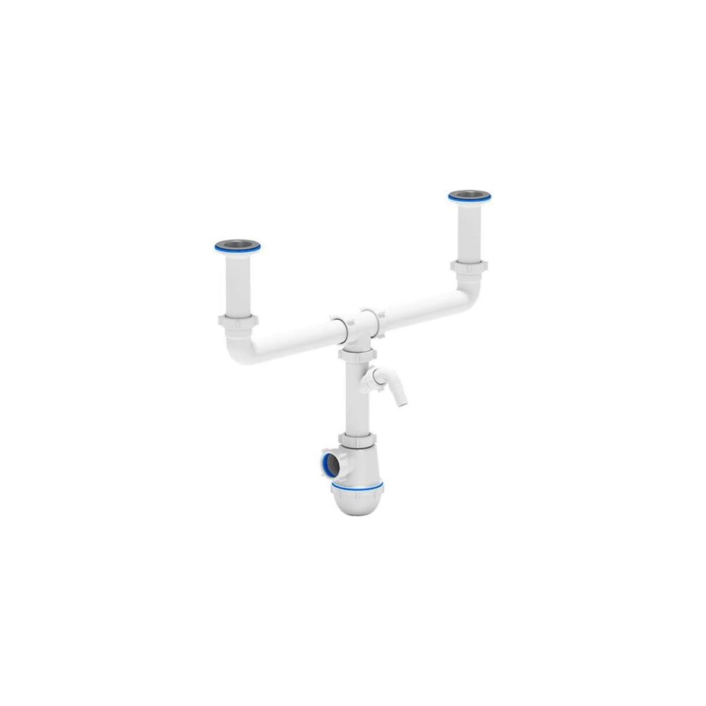 Сифон для мойки АНИ Пласт 2 чаши, бутылочный 1 1/2x40, с отводом, нержавеющая сетка A4000 025-0424